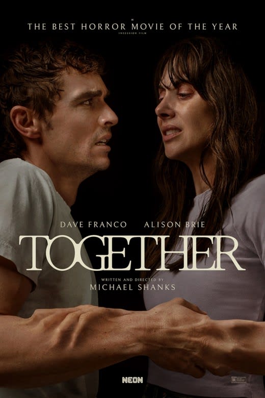 Bu yılın body horror türündeki iddialı filmlerinden biri olan Together, gece randevularında farklılık arayanlar için oldukça uygun. Başrollerde gerçek hayatta da evli olan Alison Brie ve Dave Franco yer alıyor.