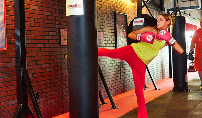 9Round salonlarında dokuz farklı istasyon var, bunlardan ilk ikisi ısınma ve güç egzersizlerine yönelik. Daha sonra asıl eğlence başlıyor, boks eldivenlerinizi giyiyor ve altı round boyunca size öğretilen yumruk ve tekme teknikleriyle kum torbalarına vuruyor, bir yandan kol, sırt ve bacak kaslarınızı güçlendirir, koordinasyonunuzu artırırken diğer yandan da bol bol stres atıyorsunuz. Son round ise core bölgesine yönelik egzersizlerden oluşuyor.