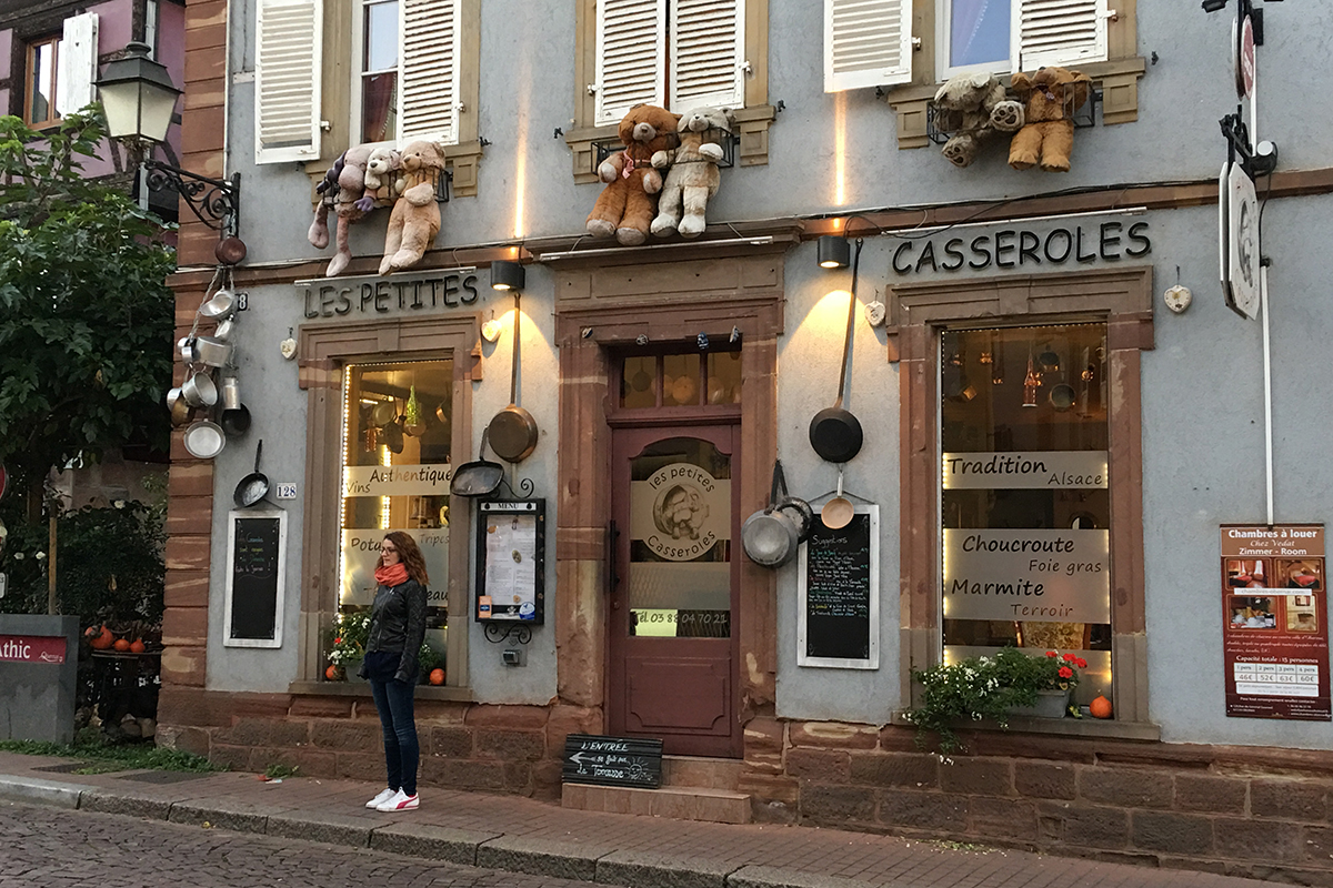 Bizi restoran tarafındaki görevli kadın nazik sesi ile karşılıyor, “Bonjur Madaam, Bonjur Mösyöö, Bonjuuur”. Fransa’nın metropolleri dışında Fransızların kendi dillerinden başka dil bilse de konuşmadıklarına veya kaba davranışlar içinde bulunduklarına dair söylemler duymuştuk. Fakat Alsace bölgesi zihnimizde yerleşmiş bu söylemleri yok etti.