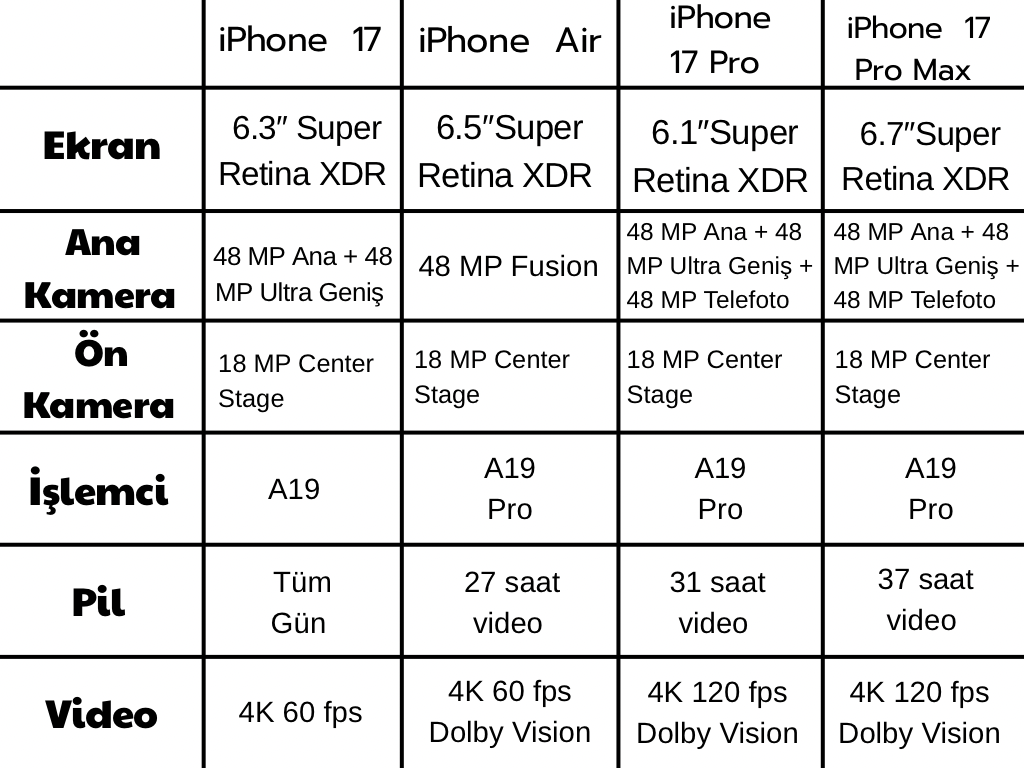 İPhone 17, Pro ve Pro Max