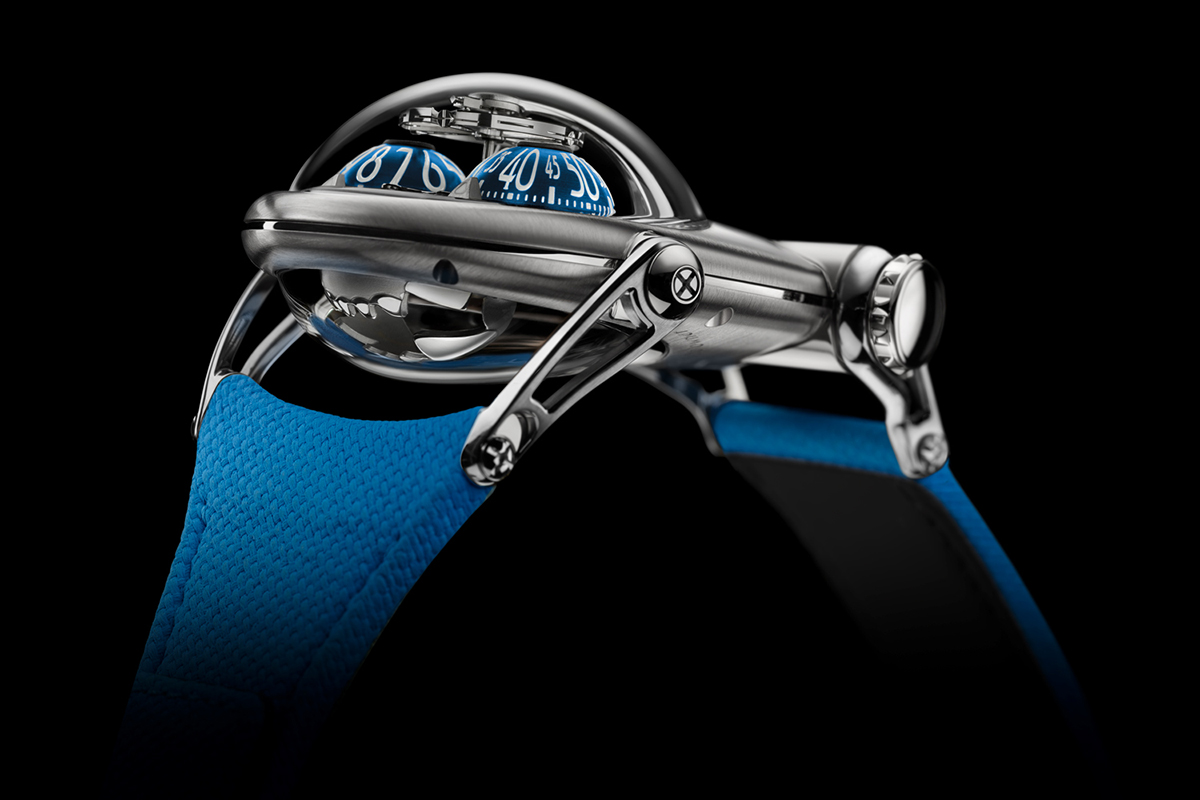 HM10 gerçekten de yaşayan bir saat. Zamanı gösteren iki küre şeklindeki ‘gözleri’ de biri saati diğeri dakikayı gösterecek biçimde dönüyor. Bu iki kürenin üzerinde ise, Büssler’in Bulldog’un ‘beyni’ olarak adlandırdığı, dönen bir denge çarkı yer alıyor.