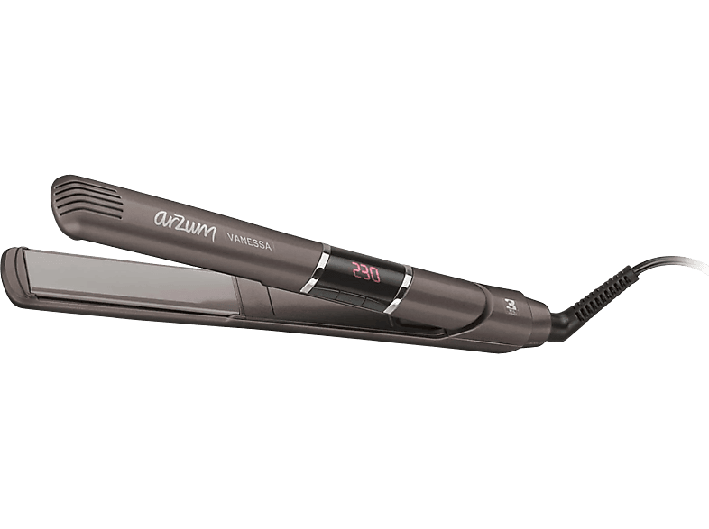 Arzum Vanessa saç düzleştirici, 120–230°C arasında ayarlanabilen sıcaklığı, keratin ve argan yağı katkılı seramik plakaları, otomatik kapanma ve soğuk uç özellikleri ile saçı nazikçe düzleştirip parlaklık kazandırır ve güvenli kullanım sağlar.