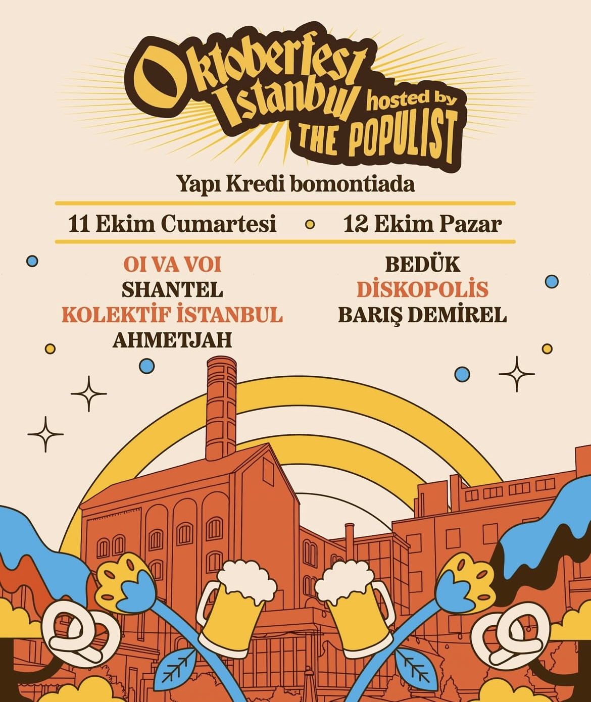Bu yıl İstanbul’da Bomontiada Oktoberfest 11 ve 12 Ekim’de kapılarını açıyor! Tarihi Yapı Kredi Bomontiada’da gerçekleşecek festivalde, Bavyera’nın o neşeli ve coşkulu atmosferini İstanbul’da yaşamak mümkün olacak. Sahneyi Oi Va Voi, Bedük, Shantel, Diskopolis, Kolektif İstanbul, Barış Demirel ve Ahmetjah gibi birbirinden enerjik isimler paylaşacak. Müzik eşliğinde dev bardaklarda biranızı yudumlarken, geleneksel Alman lezzetlerini tatabilir, renkli dekorasyonlar ve canlı performanslarla kendinizi festivalin içinde hissedebilirsiniz. Mekan, şehrin merkezine yakın ve tarihi Bomonti Bira Fabrikası’nın restore edilmiş bölgesinde, yani hem keyifli hem de ulaşımı kolay!