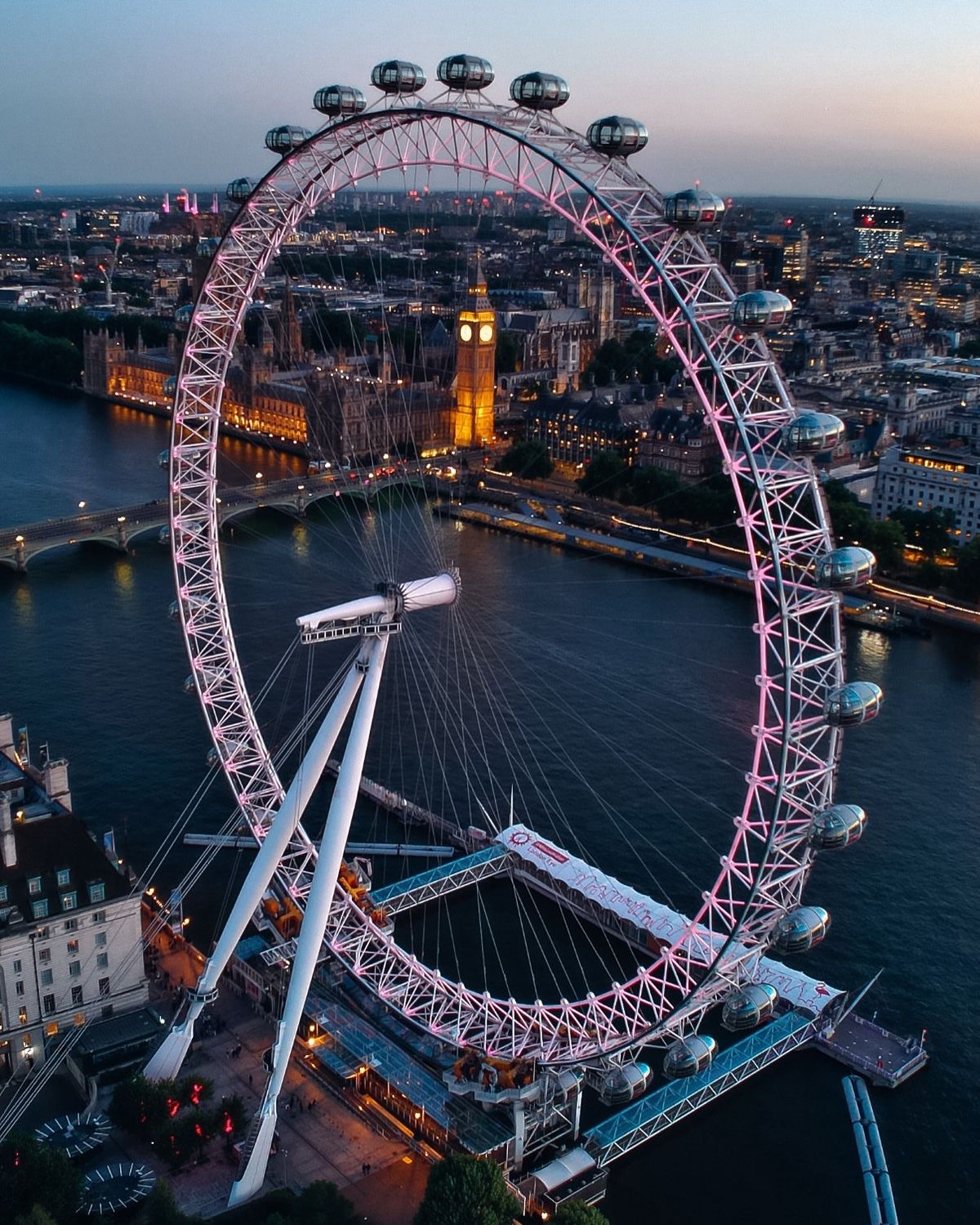 2000 yılında açılan London Eye, 135 metre yüksekliğiyle bir zamanlar dünyanın en büyük dönme dolabıydı. Her biri cam kapsüllerden oluşan kabinler, ziyaretçilere Londra’yı kuşbakışı izleme fırsatı sunar. Yaklaşık 30 dakikalık bir tur boyunca Thames Nehri, Westminster, St. Paul’s Cathedral ve hatta açık havalarda Windsor Kalesi bile görülebilir. Özellikle gün batımı ve gece saatlerinde aydınlatılmış şehir manzarasıyla son derece romantik bir atmosfer oluşturur.