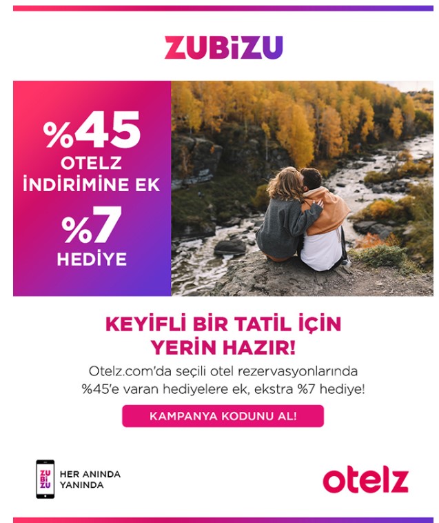 Ve tabii ki, Otelz'in sunduğu indirimlerin tadını çıkarmak için son bir sürpriz var: Tüm indirimlere ek olarak %7 ZUBİZU indirimi! Zubizu sadakat programı üyeleri, Otelz üzerinden yaptıkları rezervasyonlarda bu ekstra fırsattan yararlanabiliyor. Erken rezervasyon kampanyalarındaki mevcut indirimlerin üzerine binen bu %7'lik ek avantaj, tatil bütçenizi bir adım öteye taşıyor. Zubizu üyeliğinizi aktif hale getirin, Otelz'in fırsatlarını yakalayın ve indirimlerin katlanarak çoğalmasını izleyin – çünkü en iyi tatiller, en akıllı seçimlerle başlar! Hemen otelz.com'a uğrayın ve maceranıza başlayın.