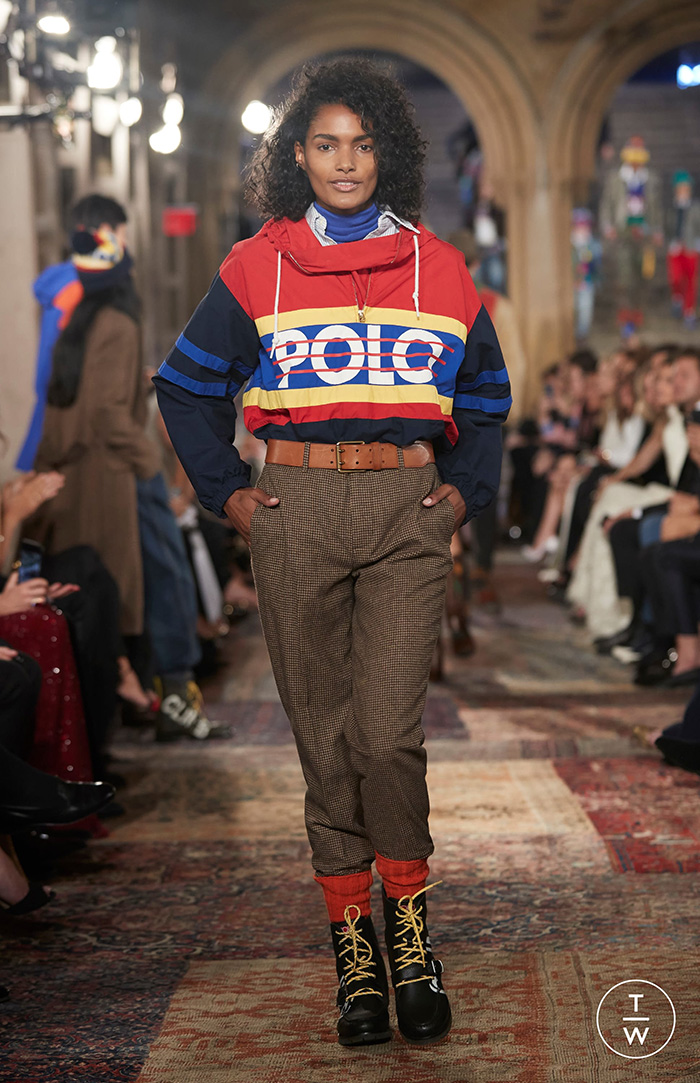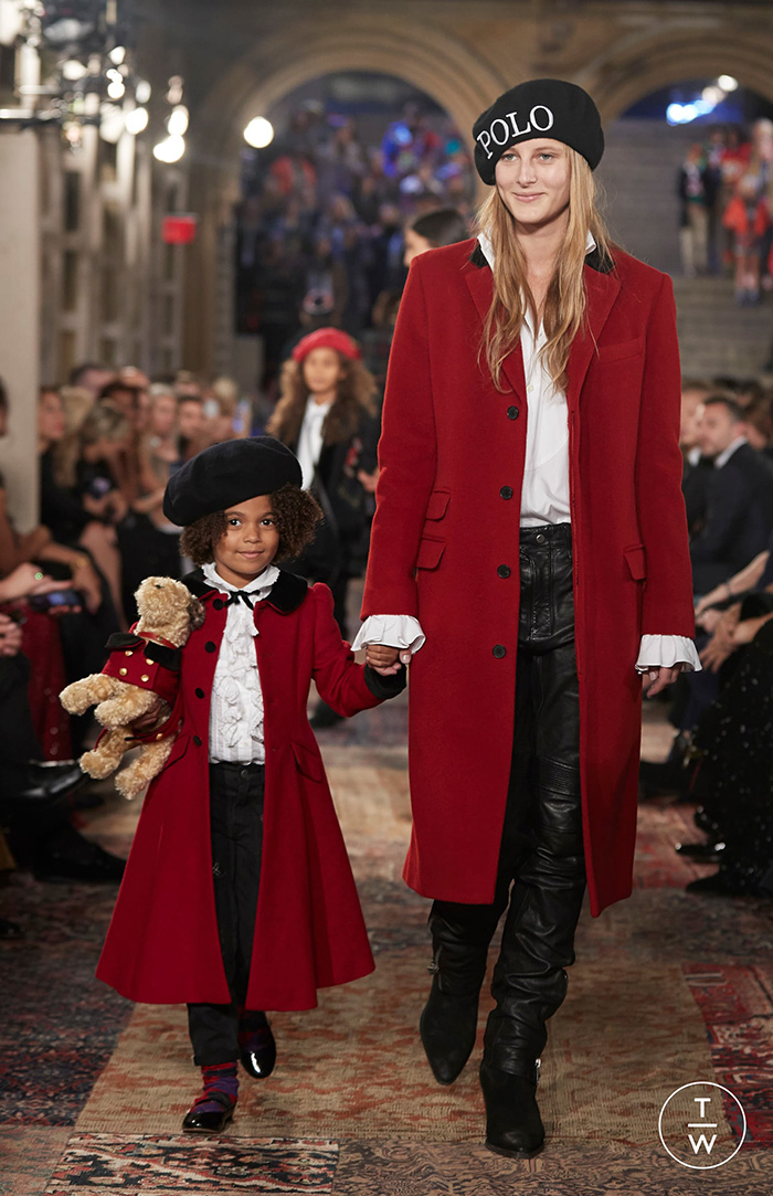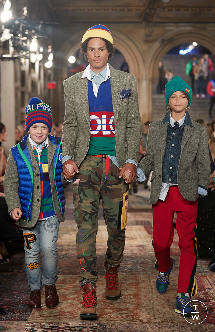 Defilenin ilk bölümü bittiğindeyse podyumu bütün renkleriyle Polo tasarımları istila etti. Amerikan kolejlerininkini andıran spor montlar, ekose etekler, parlak ve cesur renkler, devasa logoloar 90’ların nostaljik trendini yaşattı. Profesyonel modellerle el ele podyuma çıkan çocuklar ise Ralph Lauren çalışanlarının ve modellerin çocuklarıydı.