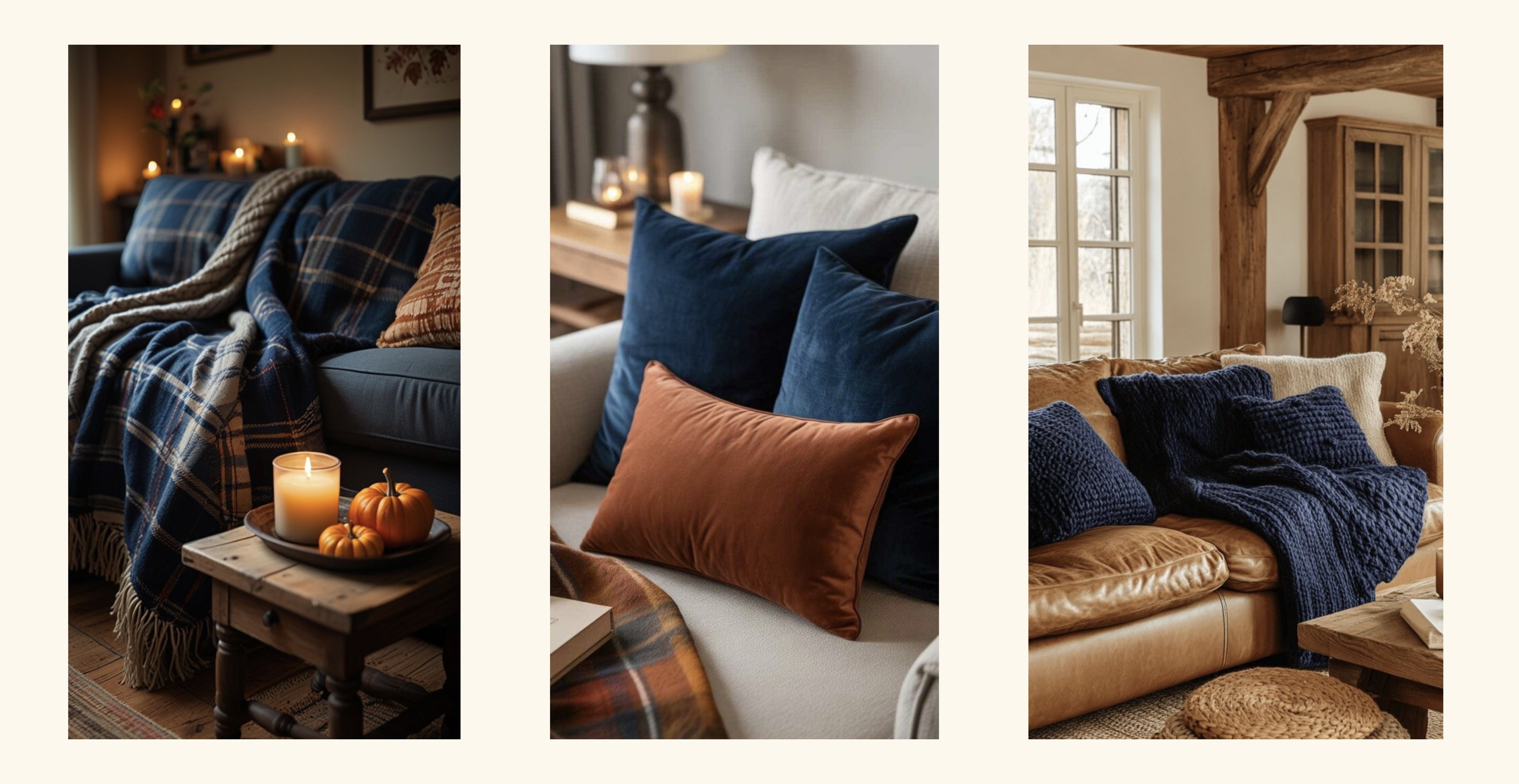 Kahverengi tonları (toprak tonları) sonbaharı yansıtan en iyi renklerden bazıları. Kahverenginin fildişi, tarçın, kiremit ve bej tonlarıyla eşsiz bir uyum yakalayan gece mavisi de bu sezon ev dekorasyonunda sıkça tercih ediliyor. Çeşitli kumaşlardan soft dokulara kadar salonunuzun ya da yatak odanızın birçok alanında bu uyumdan yararlanabilirsiniz. Sıcak tonlarla soğuk tonların bir arada kullanılması evinize modern ve duygusal bir hava katacaktır.