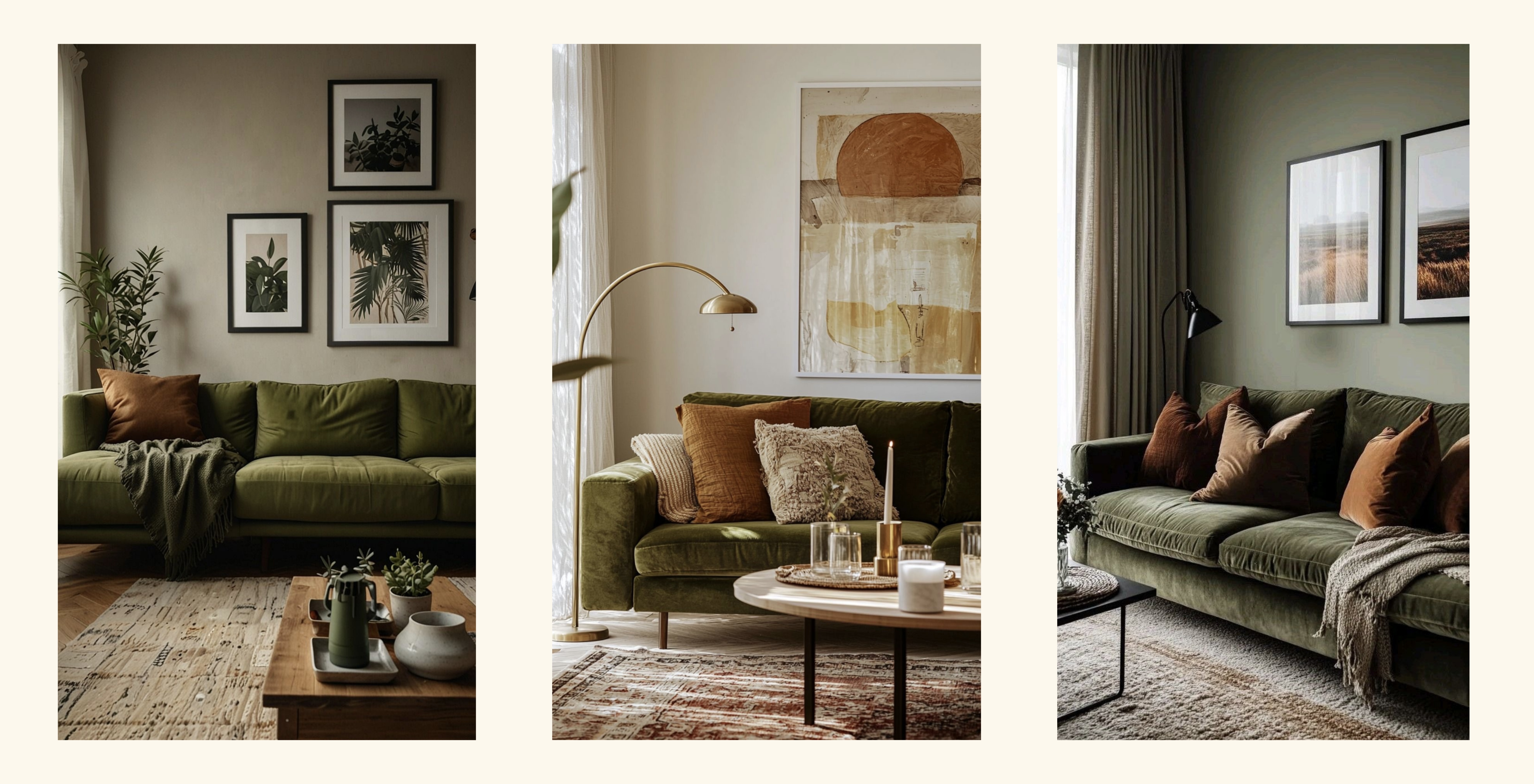 Açık yeşiller tazelik ve ferahlık hissi verirken, koyu yeşiller sofistike ve dingin bir atmosfer yaratmakta. Örneğin, kiremit rengi bir koltuk veya ahşap mobilya ile zeytin yeşili bir halı ya da bitki kombinasyonu, mekâna hem sıcaklık hem de canlılık katar. Toprak tonları ile yeşilin bu uyumu, özellikle sonbahar ve kış dekorasyonlarında, evin her köşesinde doğal bir rahatlama ve samimiyet hissi uyandırır. Yeşil, toprak tonlarının sıcaklığını dengelerken, toprak tonları da yeşilin canlılığını yumuşatarak mekânda göz yormayan bir uyum sağlar.